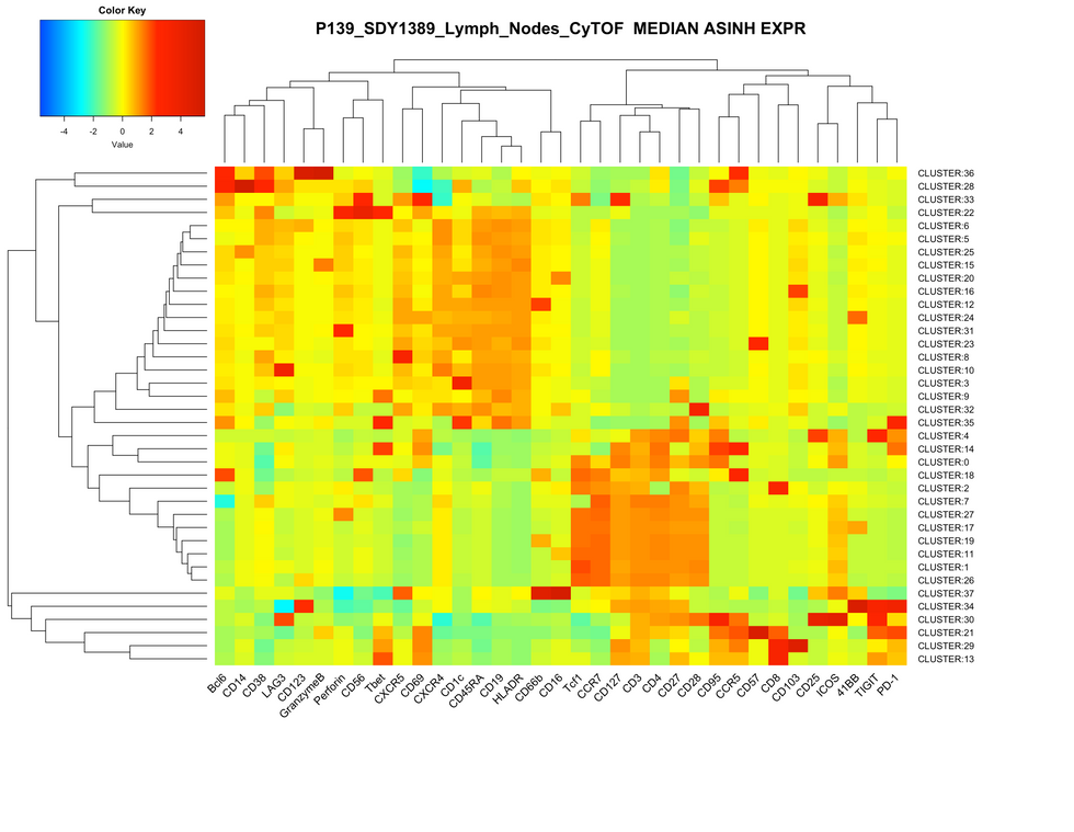 Clustering and Arcsine Median Expression of Markers within Each Cluster