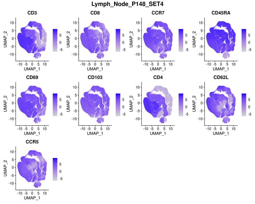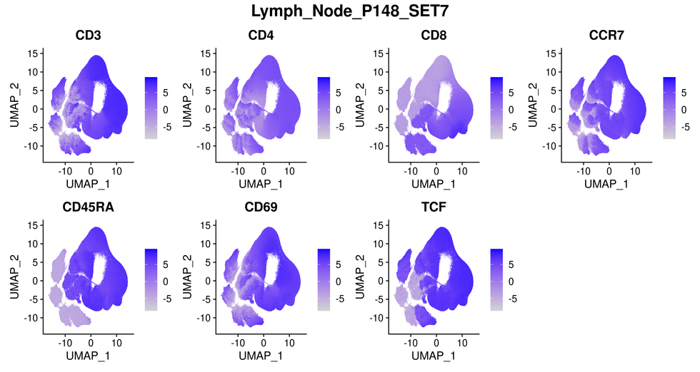 UMAP CLUSTERS FOR SAMPLE SETS WITH SAME MARKERS