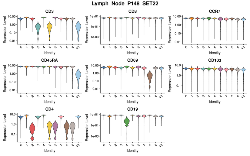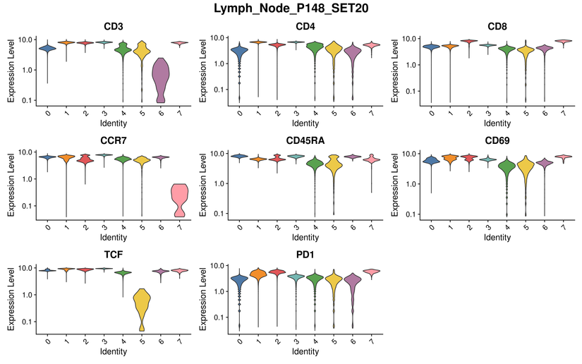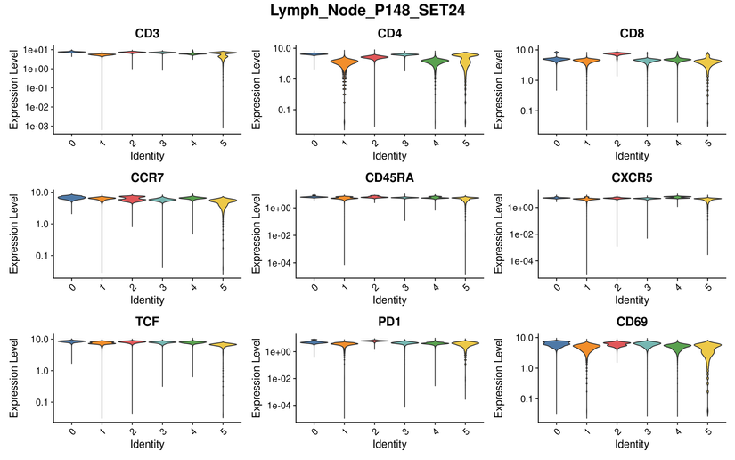 CLUSTER VIOLIN PLOT FOR SAMPLE SETS WITH SAME MARKERS