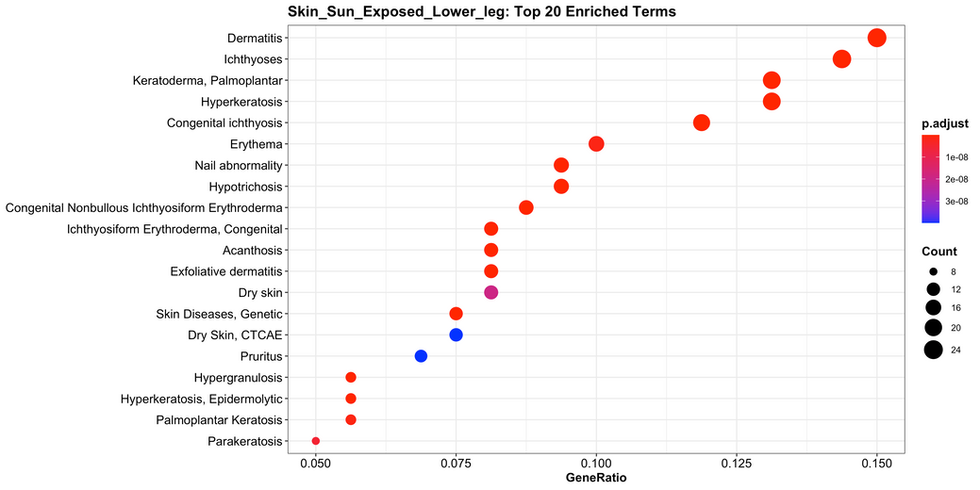The following contains tissue-specific phenotypes for skin-sun exposed (lower leg) in adult body. Refer to the left panel to navigate to other omics within the same tissue type.