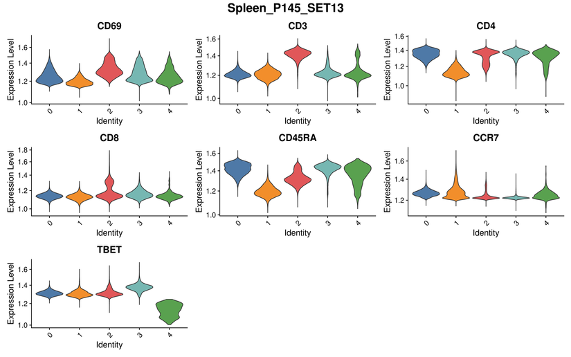 CLUSTER VIOLIN PLOT FOR SAMPLE SETS WITH SAME MARKERS